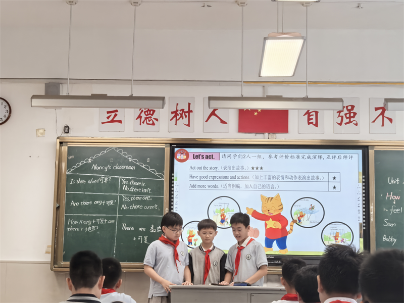 9月23日上午,小学部孔心怡老师在五年级开设了一节高效、生动的英语示范课,本节课目标明确、设计精巧、活动丰富、效果显著。教学内容为译林Unit2 A new student(culture time、fun time、cartoon time)三个版块的内容。小学部全体教师全程参与观课,并在课后围绕板书设计、小组合作、文化意识的培养与渗透等方面展开深度议课。