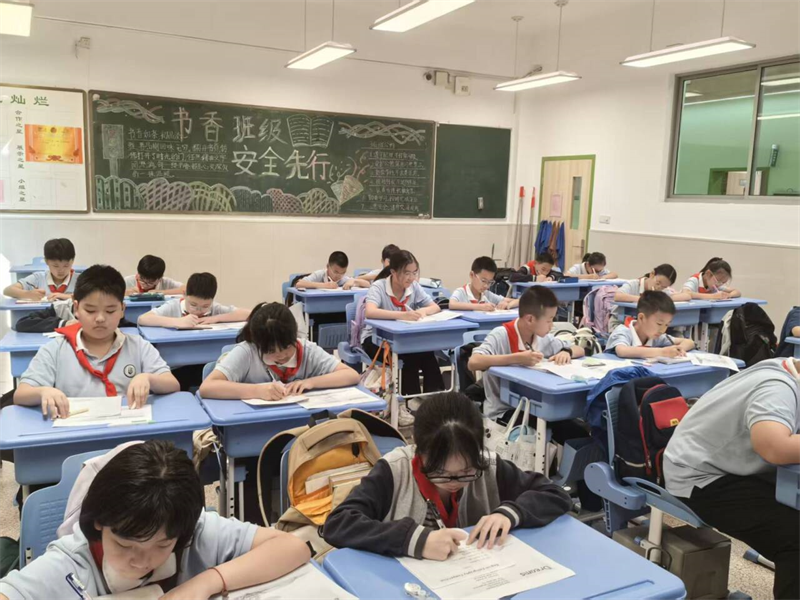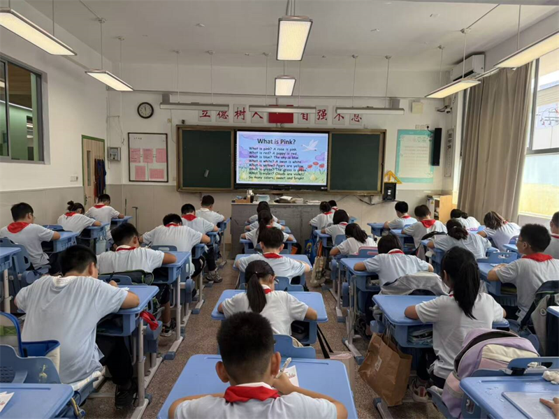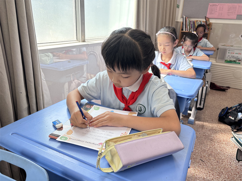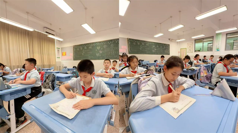 比赛当天,赛场秩序井然。三、四年级同学专注描摹What is pink,稚嫩的笔迹中,“pink is a rose”的句子渐渐清晰,满纸都是童真与认真;五、六年级同学则以更舒展的笔触书写Dreams,“Hold fast to dreams”的诗句在笔下流淌,字母形态饱满,卷面整洁美观。