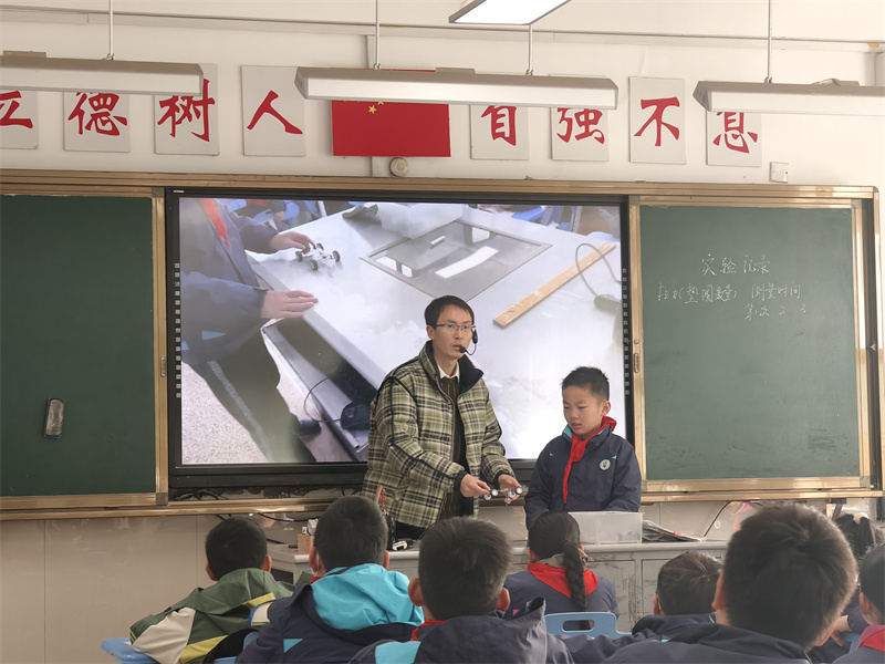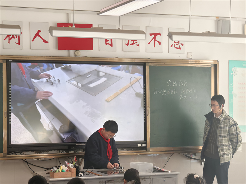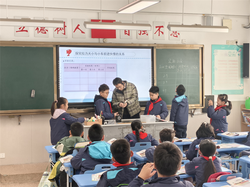 课程以“扔纸飞机”的视频导入,迅速激发了学生的兴趣。在认识力的作用环节,学生通过观察图片和思考交流,提炼出“力可以改变物体的运动状态”及“力可以影响物体运动的快慢与方向”两个核心概念。在探究拉力大小与小车前进快慢的关系时,学生分组合作,设计实验方案,记录实验数据,最终得出拉力越大、小车前进越快的结论。此外,通过观看“小钢球在磁铁作用下改变运动方向”的视频,学生进一步理解了不直接接触的力(如磁力)也能影响物体的运动。