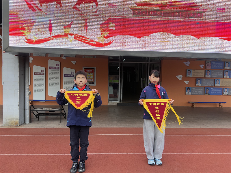 红领巾监督员宣读本周一日常规优胜班级