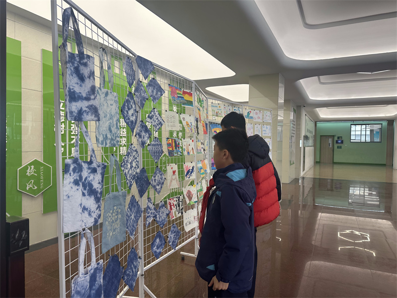 展览期间,学校组织了分批参观活动。孩子们在老师的带领下,有序步入展厅。他们时而在自己或同学的作品前自豪介绍,时而在他人的佳作前静静品味,小声交流着创作的灵感与心得。“看,这是我印制的年年有鱼!”“这幅扎染的花纹像水波一样!”欢声笑语在展厅中回荡。
