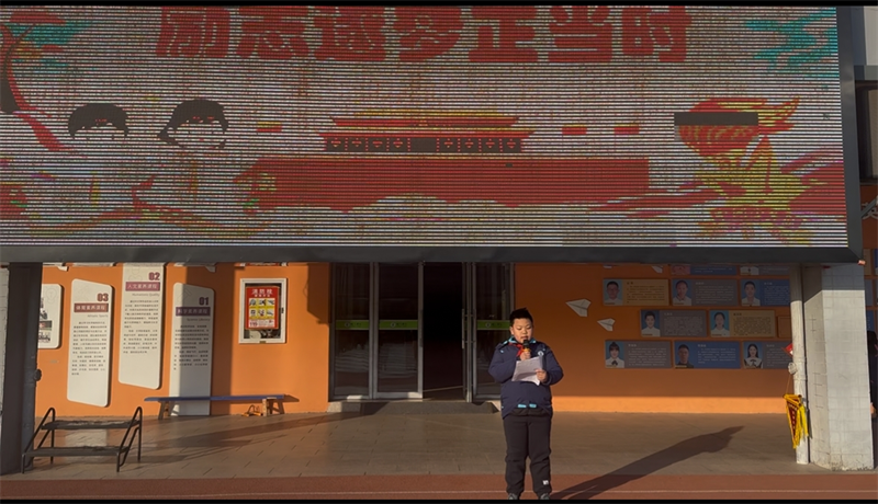曹嘉彧同学的主题讲话从“鸿鹄志”的内涵出发,告诉大家远大的志向并非遥不可及,而是藏在每天进步的小目标里——是跳绳个数的突破,是端端正正的字迹,是小组合作时勇敢表达的想法。他还结合教室、操场、小组、生活中的具体场景,诠释了“励志”就是脚踏实地的努力:紧跟老师思路、坚持体育锻炼、反复打磨作品、主动承担家务……这些点滴行动,都是逐梦路上最坚实的脚印。讲话中,他鼓励同学们不惧挫折,在一次次坚持与付出中靠近梦想,让少年时光绽放光彩。