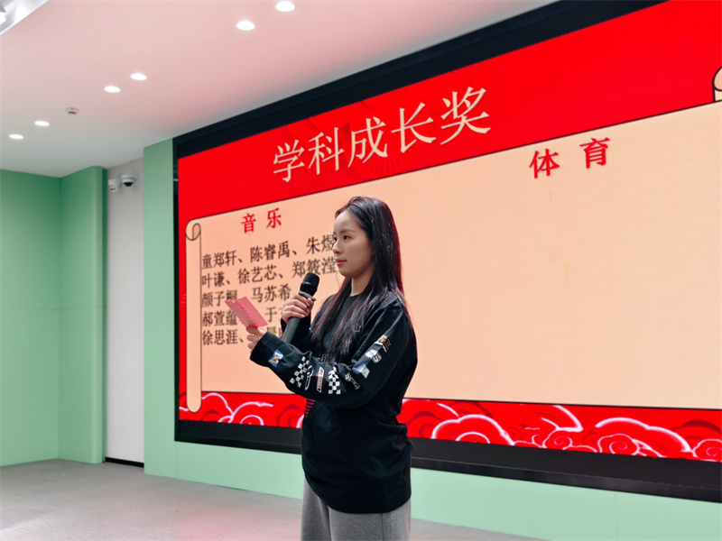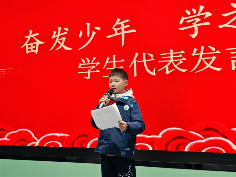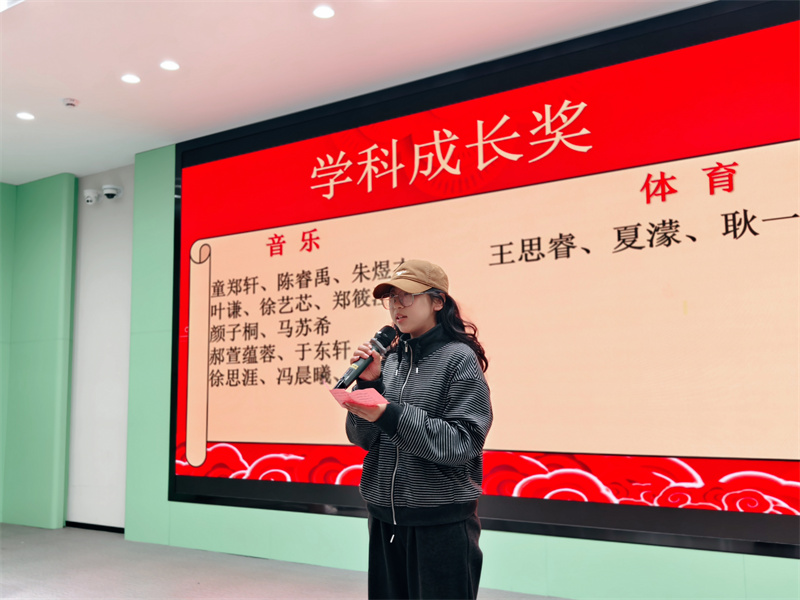 散学典礼由刘子骁、黄舒亦同学共同主持。首先由奋发少年,学之楷模—优秀学生杨东坤发言。接着,小学部郑金平主任发表了热情洋溢的期末寄语。她对本学期师生们取得的优异成绩表示衷心的祝贺,这些成绩背后是师生们日复一日的辛勤付出和不懈努力。她鼓励大家在新的一年里,继续保持这种耕耘精神,不断收获成长与进步。