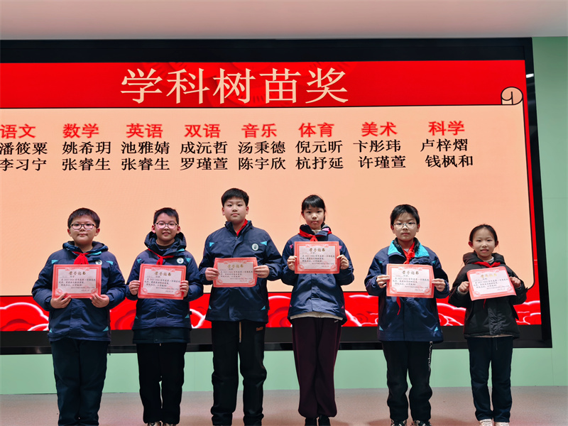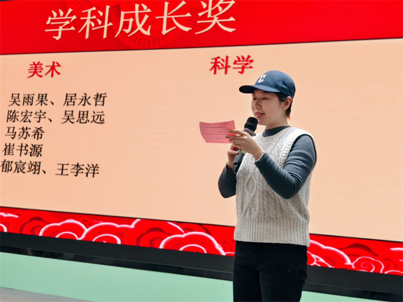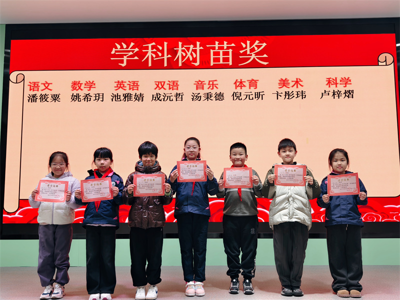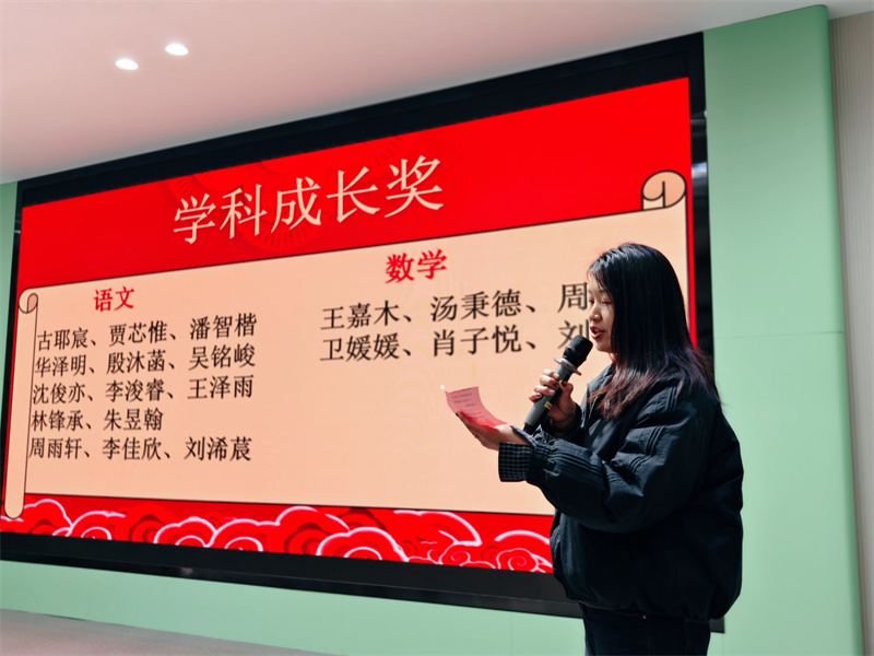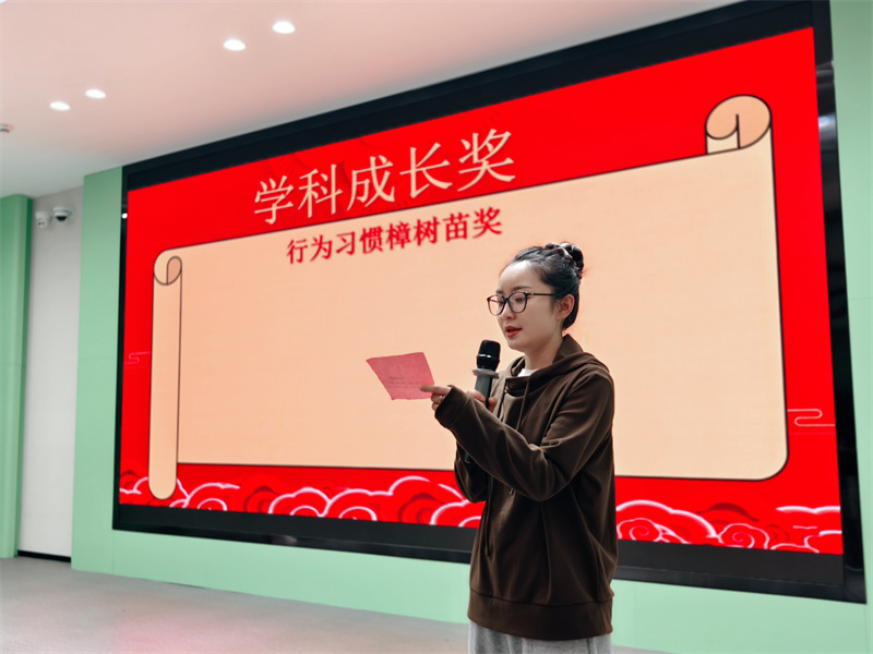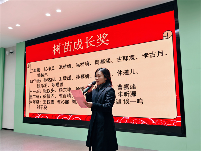 接着由李雪晨老师宣读行为习惯樟树苗奖,各学科教研组长宣读学科成长奖、小学部郑金平主任宣读树苗成长奖获奖名单。