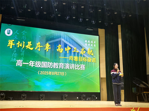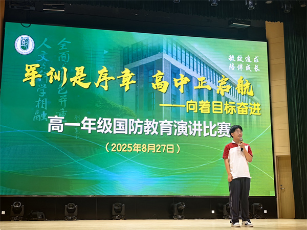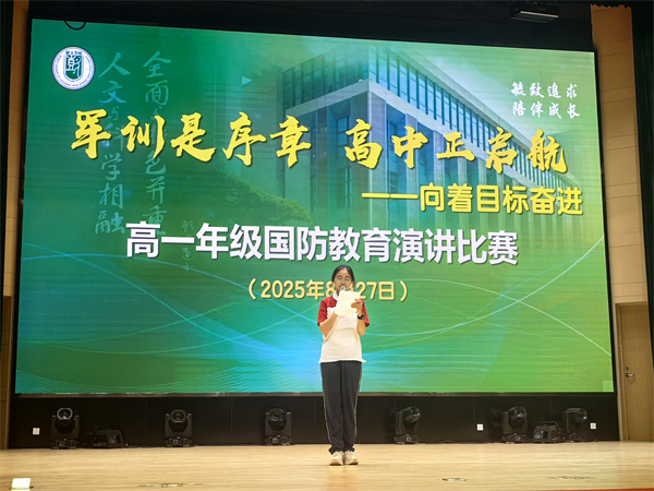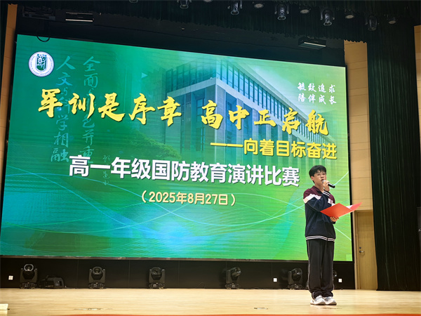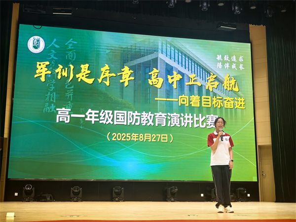 8月27日下午,树人高中凤栖湖校区报告厅内掌声雷动,高一年级国防教育主题演讲比赛在此隆重举行。本次比赛由高一年级主任陈瑞飞,年级组长王健、王菁及语文组陆霞、李想老师担任评委,旨在通过对国防教育的总结,引导新生以昂扬姿态开启高中征程。