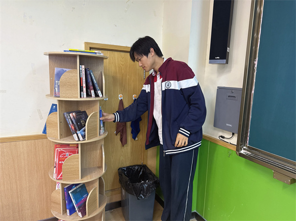 课间,流动书箱成了教室的“人气中心”。同学们围拢过来,指尖拂过书脊,眼中满是期待。“好多书是我想买却没机会买的,现在在教室就能读,太方便了!”一位同学的感慨道出了大家的心声。各班的图书管理员更是细心负责,将书籍按类别整齐摆上原木书架,有的班级还对书架进行了个性化装饰,满满当当的书架既美观又实用,成了教室角落的“治愈小站”。