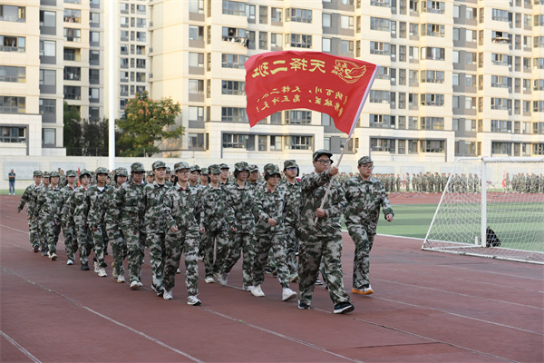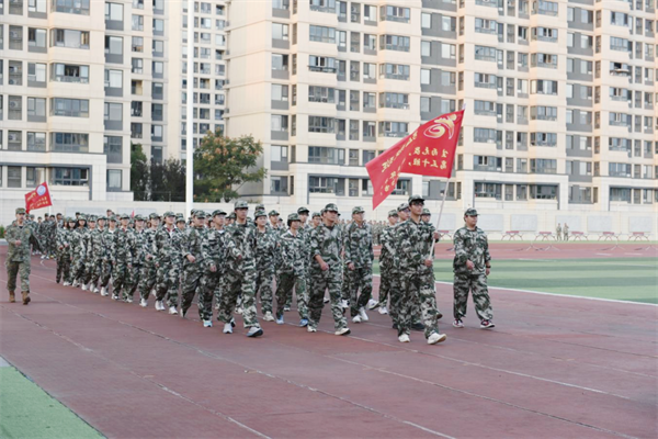 随后,激动人心的会操检阅正式开始。在总教官的指令下,高三各班级依次登场。学子们迈着整齐划一的步伐,喊着铿锵有力的口号,转体、齐步走、正步走等动作标准规范,展现出两天训练的扎实成果。阳光下,他们挺拔的身姿、坚毅的眼神,将“不怕苦、不服输”的精神诠释得淋漓尽致,赢得现场阵阵掌声,也为自己交出了一份亮眼的“国防答卷”。