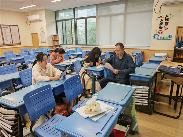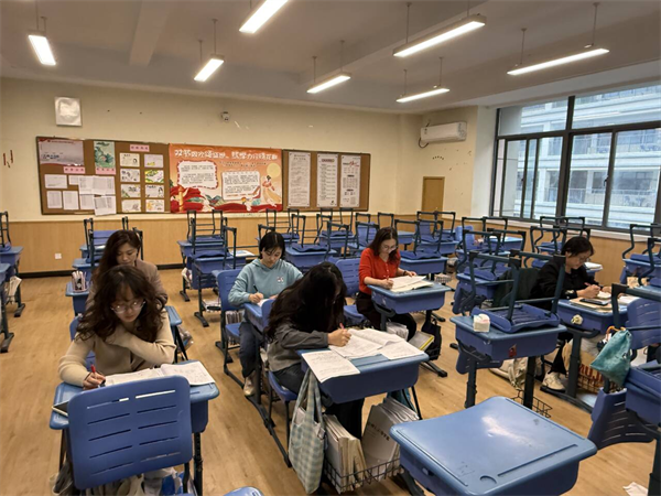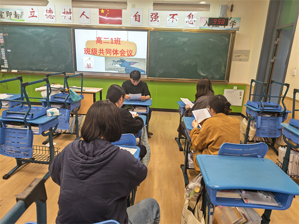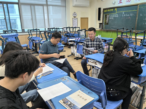 第五项议程,班级共同体会议,教研组、备课组活动。集中静校教研活动圆满结束后,老师们在各班班主任的有效组织下先分头参加班级共同体会议。教师们群策群力、互通有无,分析各科数据,洞察班级情况,把握学生动向,立志为下一次检验获得进步添砖加瓦。