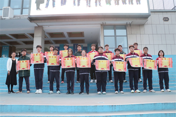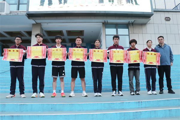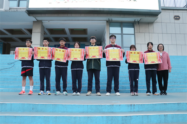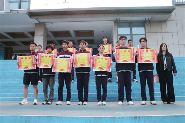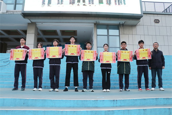 最后,八里镇龙地社区居民委员会党支部书记陈骋先生和高三年级家委代表李莉女士为本次运动会入场式中获得最佳入场创意奖的班级颁奖。操场上爆发出阵阵掌声,向获奖班级表示热烈的祝贺。