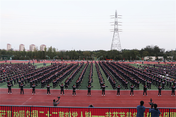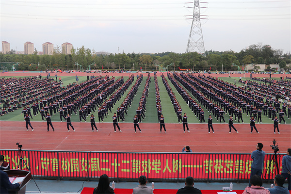首先进行的是闭幕式文艺汇演,第一个节目是高一年级展示广播操,整个过程中他们队列整齐,步调一致,体现了严明的组织纪律和强烈的集体荣誉感。