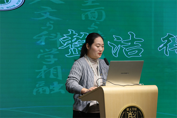 随后的评课环节中,历史组张瑜老师与物理组沈开花老师分别以《情境为基、主题为线、问题为链》和《情境为舟,问题为桨》为题,对青年教师的“情境·问题导学”公开课进行了精彩点评。她们的反思深入课堂,也映照出青年教师在教学理念上不断求新求实的探索之路。在班主任德育论坛上,徐炜老师与史晓玄老师分别带来了《以爱为笔,静待花开》和《做学生的“撑腰人”——用语言搭建桥梁,用信任铸就港湾》的经验分享。真诚的故事、温暖的语言,让在场的老师们数次动容,掌声久久不息。