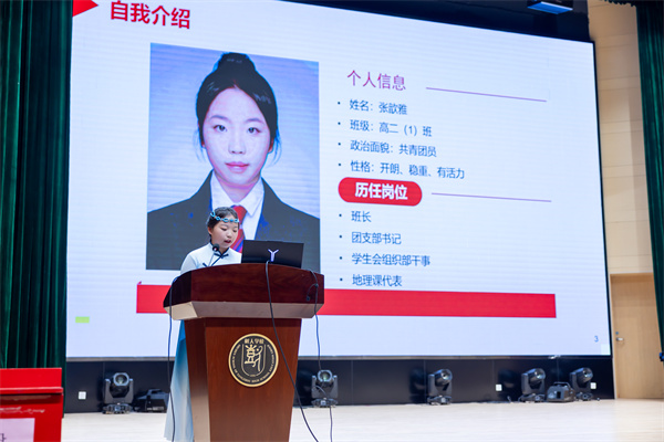 随后,第21届学生会主席团候选人王怡涵、王梓妍、韦嘉、徐浩、张歆雅依次上台进行竞选展示。