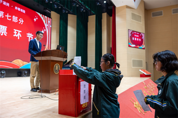 在投票环节,全体学生代表认真行使权利,郑重投出选票。在监票人的监督下,唱票与计票工作有序进行,最终由树人学校副校长程志华宣布选举结果。