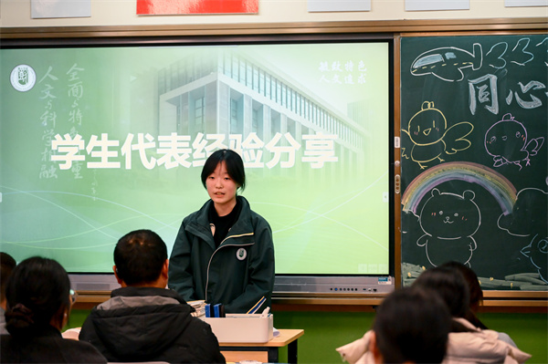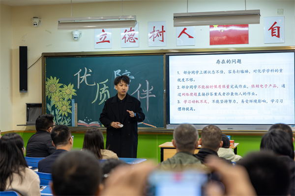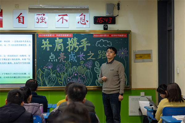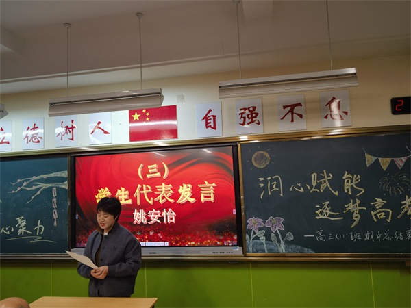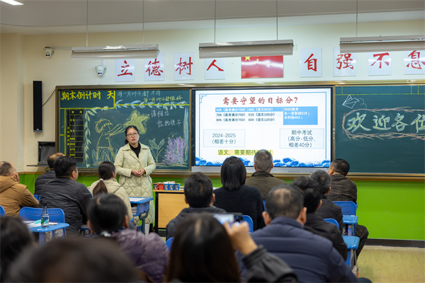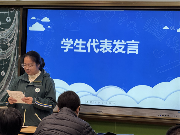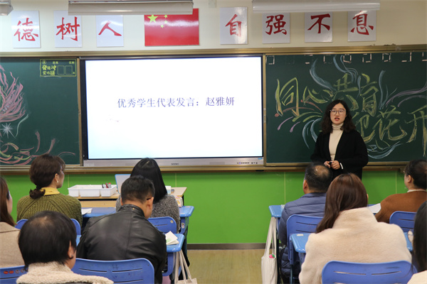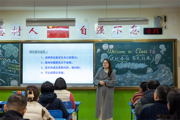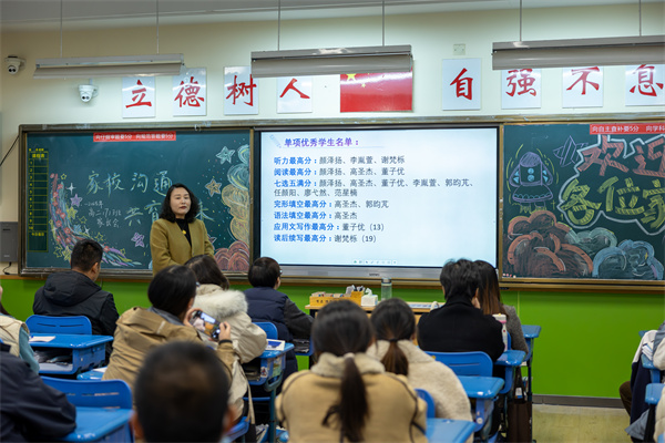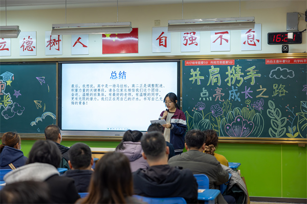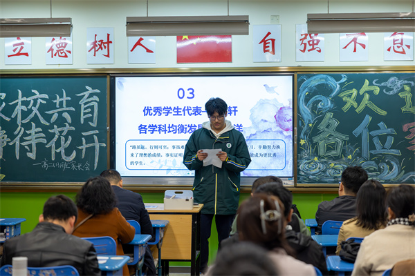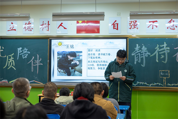 家长代表与学生代表的真挚发言更是引发全场共鸣。他们分别从家庭教育的感悟、校园学习的收获出发,分享心路历程与成长体会,以朴实的语言、诚恳的态度赢得在场家长与老师的阵阵掌声。最后,班主任进行总结,列举了本次考试中暴露的问题,并提出了解决方法,为家长提供了孩子未来改进的目标和方向。