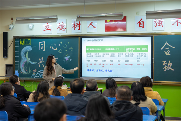 各学科任课教师依次进班交流,成为班级家长会的一大亮点。老师们结合学科特点,精准分析了学生在本次期中考试中的优势与不足,有针对性地分享学科学习技巧、课后辅导方法,并为家长在家中指导孩子学习提供可操作的方向和建议。