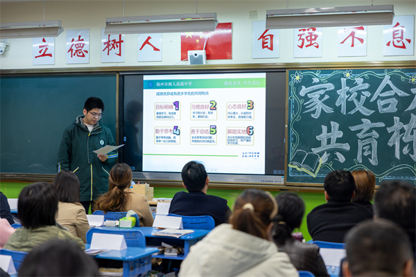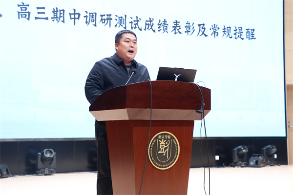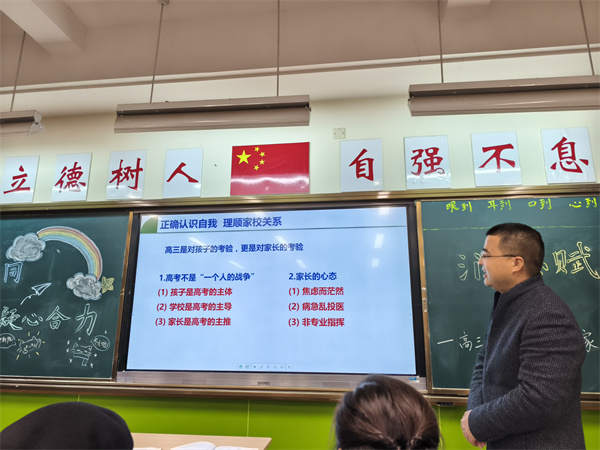 接下来,高三年级主任卞家慧对期中调研测试中表现优异的学子进行表彰。同时,卞主任还详细解读了本次期中成绩,公布了各批次分数线及各科贡献分,并表示600+分数段仍有提升潜力,让家长们清晰了解了学生备考现状。为帮助家长精准助力孩子备考,年级组围绕学生学习、心态、生活三大层面的发展特点,给出针对性应对策略。同时,年级组公布了后续月度安排,明确了各阶段关键任务,让家校备考方向更清晰。