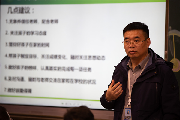 第二项议程,汪柳主任聚焦期中成绩分析,明确了学考时间节点,着重强调了合格考的重要性与时间的紧迫感。他鼓励学生以此次考试为契机,查漏补缺、奋起直追,同时呼吁家长做好陪伴与引导,助力学生以更饱满的状态投入后续学习。