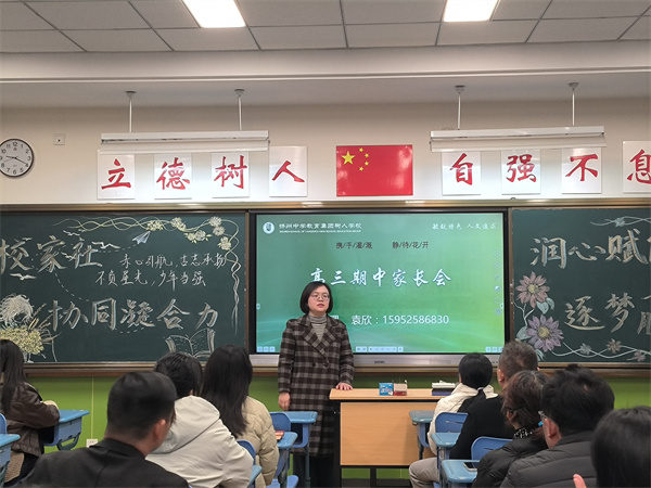高三年级以“校家社协同凝合力,润心赋能逐梦赢高考”为主题,召开了高三第一学期期中家长会。高三年级组特别邀请了八里镇社会事业发展部潘学云主任、龙地社区党支部书记陈骋及龙地社区孙敏主任出席会议。学校、家长与社区齐聚一堂,共话备考策略,共商育人大计,为高三学子的冲刺之路筑牢坚实后盾。