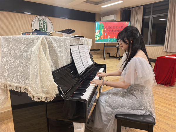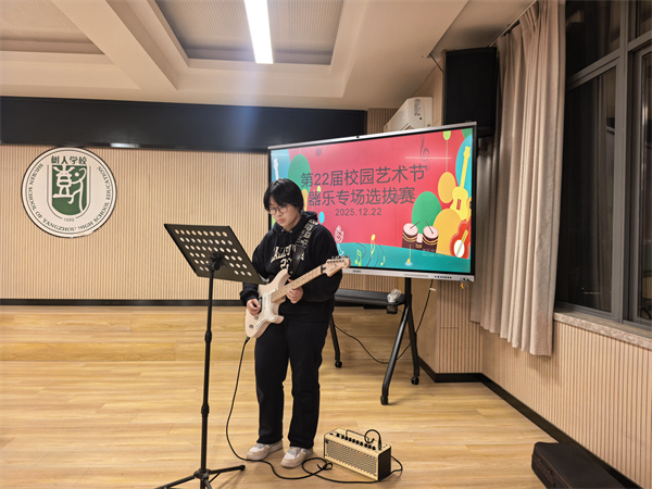 12月22日晚,我校合唱功能室内琴瑟和鸣、鼓乐铿锵,第22届校园艺术节“金声玉振”器乐比赛在此隆重举行。来自高一年级的器乐好手齐聚一堂,以精湛的技艺和饱满的热情,呈现了一场融汇古今、贯通中外的音乐盛宴,生动诠释了我校“毓致追求、全面发展”的育人理念。
