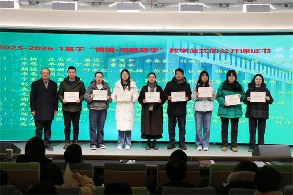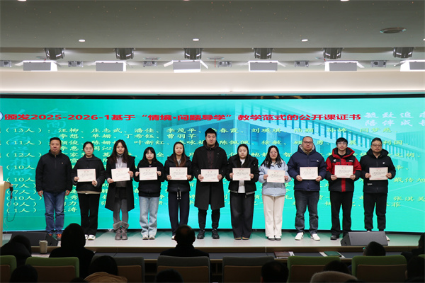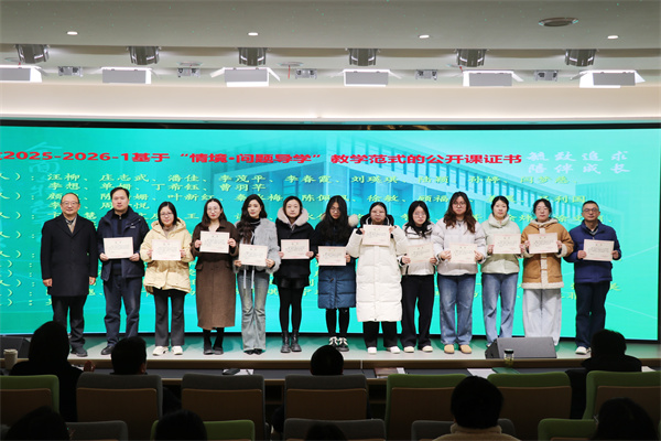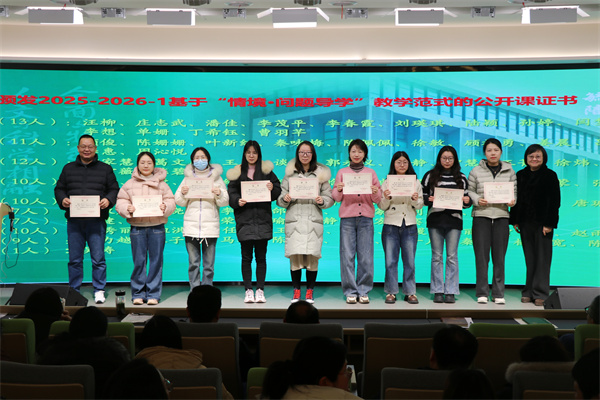 活动第三项议程,学校为2025—2026学年第一学期基于“情境·问题导学”教学范式开展公开课的教师颁发证书,各位校领导分别为对应学科组教师颁发证书,表彰他们在教学改革中的积极探索与阶段性成果,以推动该教学范式在校内的深入实践与持续创新。