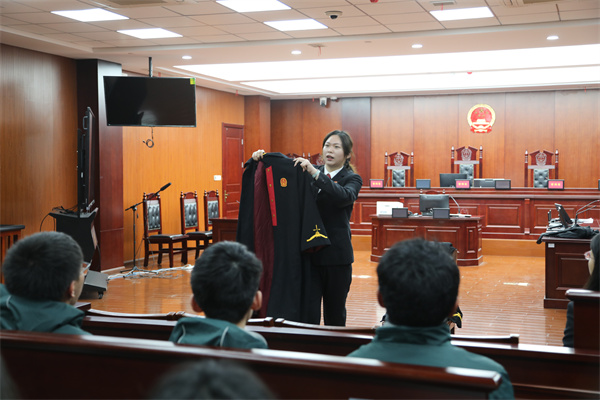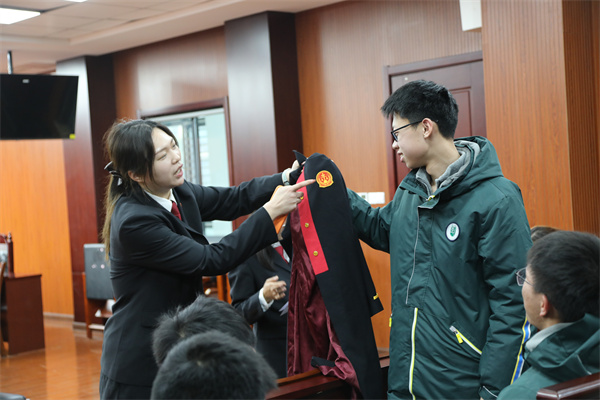 为进一步增强青少年法治意识,沉浸式体验司法威严,2月27日下午,树人学校凤栖湖校区高一(4)班全体学生在班主任的带领下,走进扬州市邗江区人民法院,开展了一场以“法治实践零距离”为主题的寒假社会实践活动。通过实地参观与“模拟小法庭”角色扮演,同学们在寒假尾声接受了一堂生动的法治教育课。