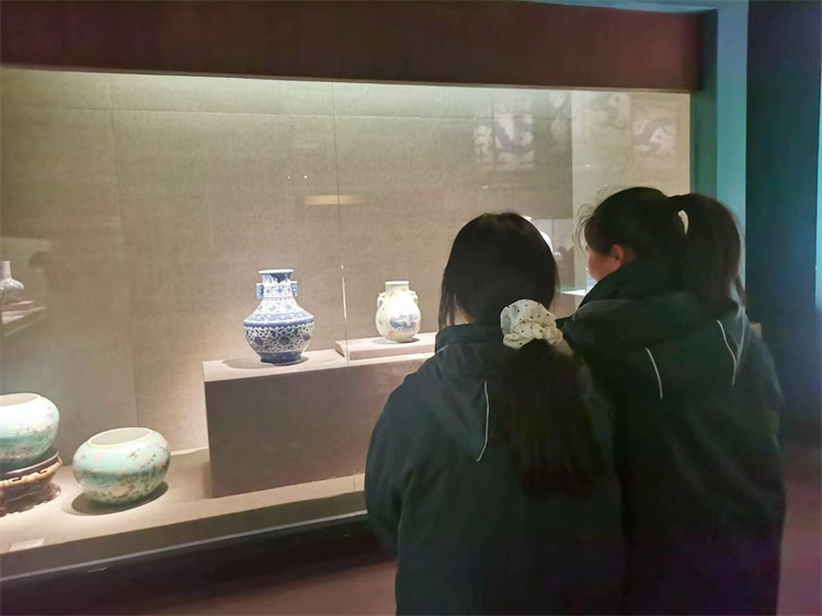 瓷器展区内,一件件清代瓷器精美绝伦。青花、粉彩等不同工艺的瓷器错落陈列,纹饰细腻、色彩雅致,从龙纹图案到花卉纹样,每一处都体现着古人的审美与匠心。大家一边观赏,一边轻声交流,在对比与欣赏中体会中国古代瓷器艺术的博大精深。
