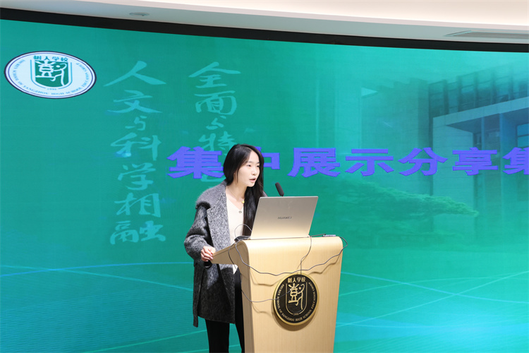 地理组陈华琪老师以《看见·洞见·预见》为题,系统展示了AI课堂智能分析系统如何赋能课堂观察与诊断。她从“一眼观课——看见课堂整体样貌与结构”“听话析课——聆听课堂话语细节与质量”“数字画课——以好课标准为镜,观照课堂品质”三个维度展开分享。在总结反思中,她提出要从“推理解释”走向“创新表达”,关注学生发言机会的分布均衡,并让学生在学习过程中始终明确“做到什么程度是好的”。