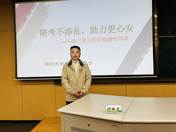 活动依托工会“义工教授”优质师资,整合多方资源,特邀扬州大学教科院心理学副教授、硕士生导师、中国人民大学博士、美国普渡大学高级访问学者、扬州市中医院心理咨询室主任、扬州市心理学会秘书长何桂宏博士面向高三家长做考前50天心理讲座。