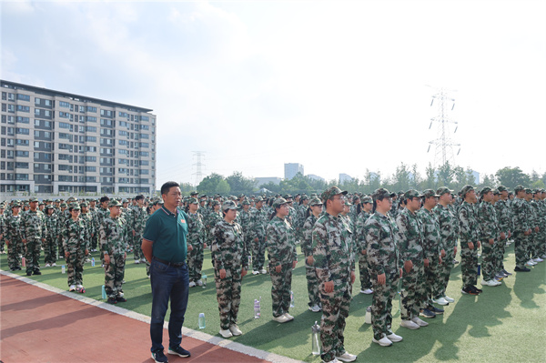 赵校长首先代表学校对高一新生的到来表示热烈欢迎和祝贺!向前来参训的教官们表示崇高的敬意和感谢!赵校长向同学们表达了殷切的期望,即树形、立心、励志。希望同学们将军训当作高中三年披荆斩棘的开始,在未知的处境里体悟勇敢。精彩洋溢的讲话鼓舞着同学们以饱满的激情参与训练,磨炼意志,展现风姿。