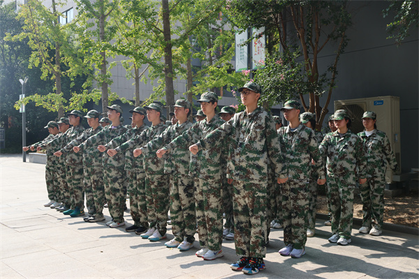 “老师好!”高一新生们练习问好的声音响彻云霄,这是军训教官对同学们胆量的训练。“两臂自然下垂,挺胸收腹,坚持住!”烈日下的长久站立是对同学们意志品格的一次考验。伴随着教官们的口令,同学们一遍遍练习着稍息、立正、蹲下、起立、行进,试图将每一个动作都做到完美,那一招一式尽展活力与豪情。苍穹之下,热土之上,少年们的青春飞扬在操场的每一个角落。烈日下,他们用坚韧守护梦想,挺直的身躯、坚定的目光、嘹亮的口号,是属于他们最美好的青春印记。