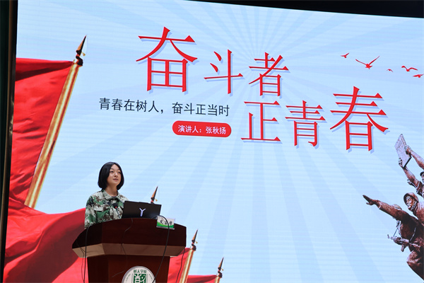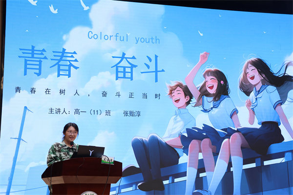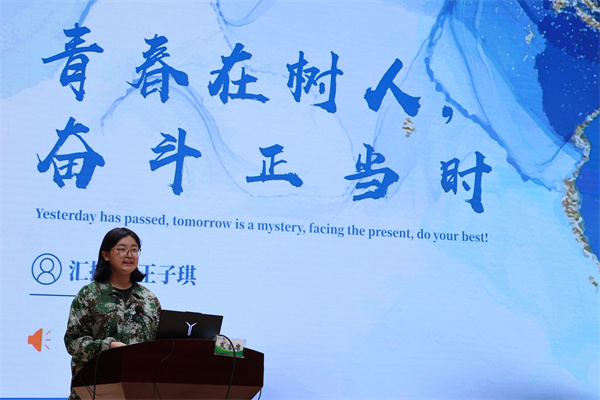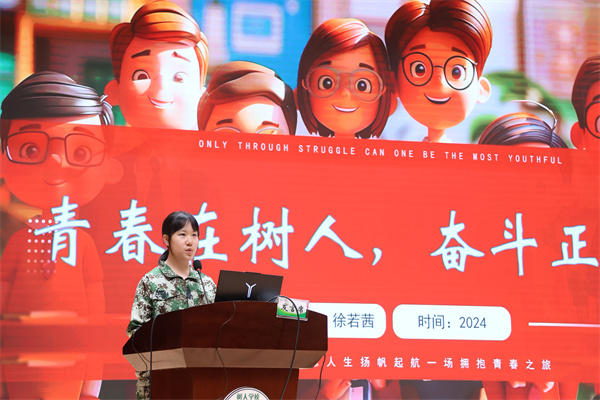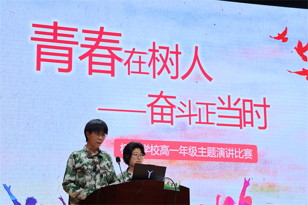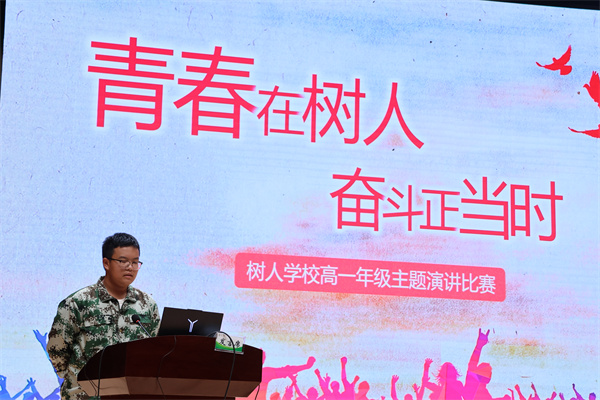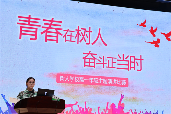 下午,报告厅内人声鼎沸,气氛热烈非凡。这里正举行着一场别开生面的演讲比赛,以“青春在树人,奋斗正当时”为主题,来自各班的精英选手齐聚一堂,共同上演一场口才的巅峰对决。