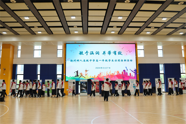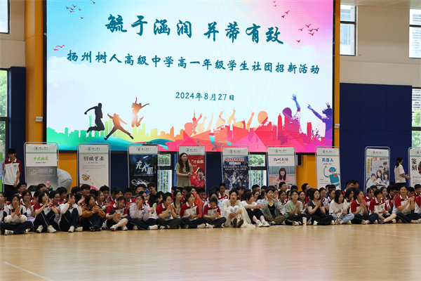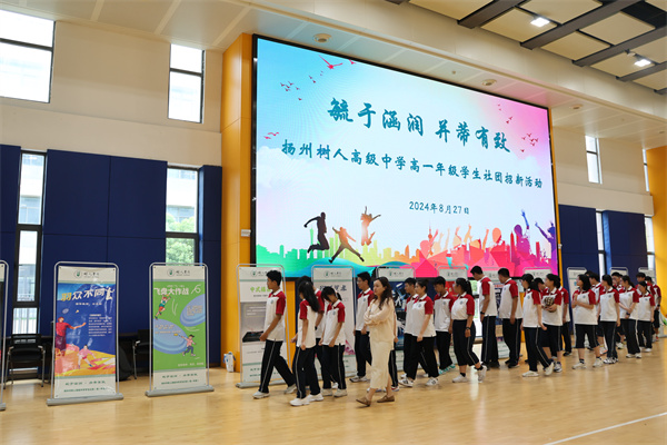 为扎实推进双创工作,切实落实五育并举,尊重学生个性化需求,提升学生综合素质,努力打造学生的“第二课堂”,8月27日,扬州树人学校社团招新工作在体育馆正式开启,树人学校副校长程志华、赵平,校办主任汪柳,团委书记王菁,高一年级年管会和全体同学参加了本次活动。