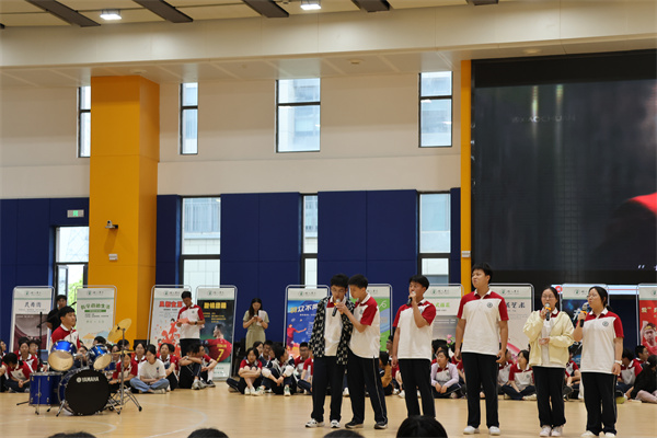 下午三点,各班按照年级组安排的顺序,依次进入体育馆,参观学生社团的宣传展牌,了解、挑选自己心仪的社团。全体同学按照军训队伍站立,到班级相应位置集中等待下一个环节——各班才艺展示。为了迎接此次社团展示,每个班级都精心准备了才艺展示,形式多样,内容丰富,充满创意,涵盖唱歌、跳舞、朗诵等多个方面。所有节目表演结束后,全体师生再次用最热烈的掌声感谢所有班级的精彩表现,在接下来的社团活动和学习生活中,大家都将以最饱满的情绪和热情投入其中,在树高校园中拼搏奋进,向阳而生。