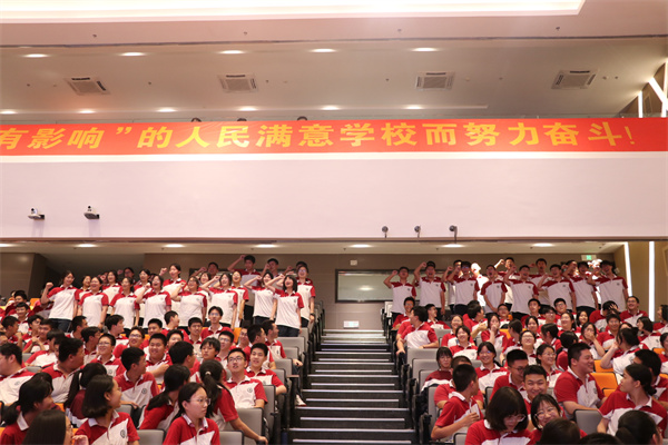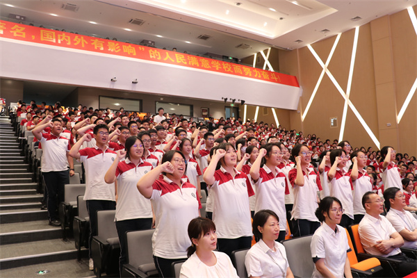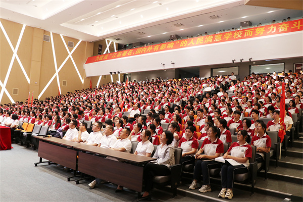 云天收夏色,木叶动秋声。在这金桂飘香、硕果满枝的美好时节,树人学校高二年级在凤栖湖校区报告厅隆重举行了“高二年级升级仪式”,共同按下高二年级的启动键,奏响升级的新乐章!出席本次活动的有:凤栖湖校区校长朱云峰先生、副校长程志华先生、副校长张鹏先生,以及高二年级全体师生。大会由高二年级主任卞家慧主持!