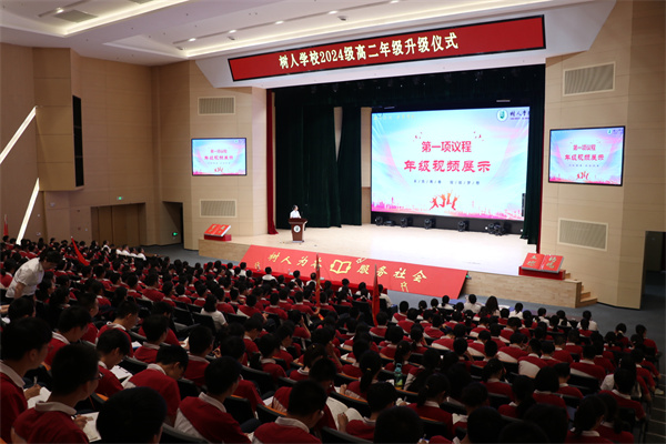 升级仪式缓缓落下了帷幕,崭新的篇章已经拉开了序幕。愿高二年级的同学们,为了自己的梦想,长辈的期许,树人的辉煌,祖国的明天,向前奔跑!高二学子,出征!高二学子,必胜!