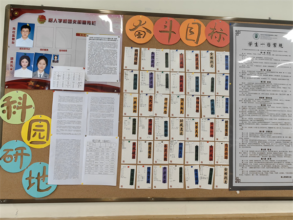 在各班同学和班主任的共同努力下,每个班级的教室都各具特色。精心布局的绿化角、整齐有序的图书角、精彩纷呈的特色墙、苍劲有力的书法作品、精致而充满艺术气息的绘画作品、温暖的班级合影、激昂有力的班级口号、设计新颖的板报等,都生动地表达了同学们对学习的热情,对班级的热爱,对生活的憧憬。