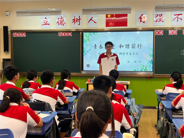 为了让学生暑假之后更快地适应学校的生活,在学校更好地进入高中学习状态,9月9日上午,我校高一、高二年级在各班隆重举行了主题为“青春奋进,和谐前行”的主题班会。各班班主任以及各班全体同学参加了本次班会。