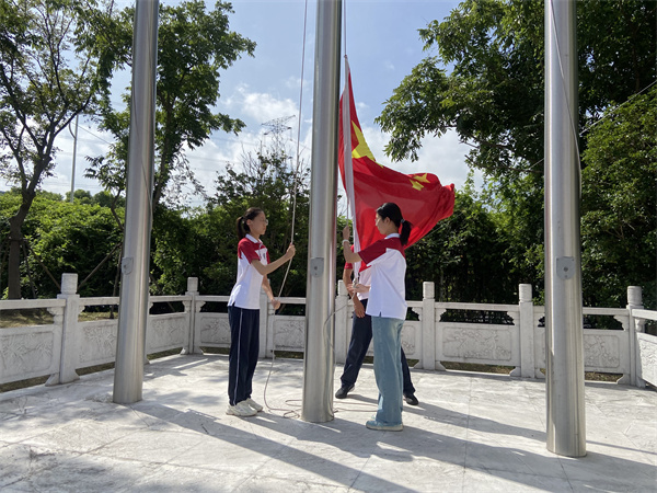接下来,为激发学生的爱国情怀,铭记九一八事变,举行了以“勿忘国耻,振兴中华”为主题的升旗仪式。本次升旗仪式由高一(2)班张谦艾同学主持。