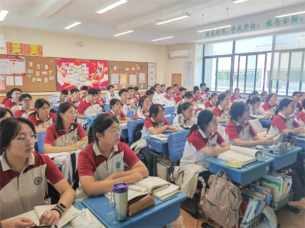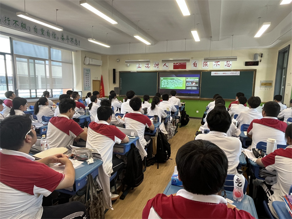 为了能让高三学生在一轮复习中明确方向,提高效率,9月23日上午,高三年级组举行了高三一轮复习沙龙,理科班同学们在教室观看了直播。本次活动由高三(7)班张乐恒和高三(10)班徐华婧两位同学主持,邀请了高三数学备课组长郑全红老师和物理备课组长郭兴春老师分别分享了数学和物理一轮复习“宝典”。