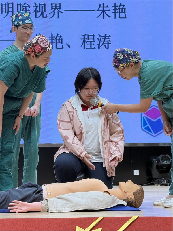 在护理专家们的指导下,同学们纷纷上台进行实际操作,亲身体验了急救的过程,激发了学生们的学习兴趣,帮助他们更好地理解和记忆急救技能。