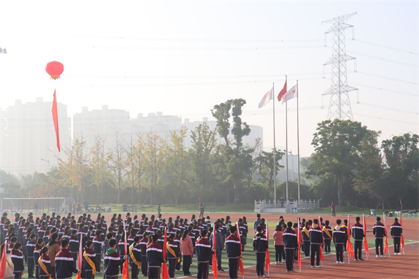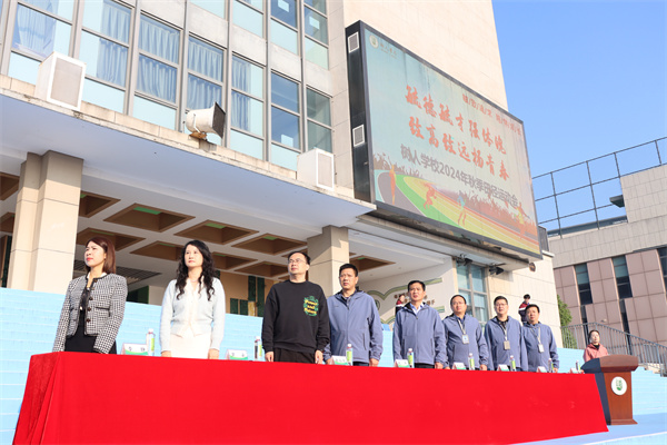学工处主任卞家慧主持开幕式。在庄严的国歌声中,五星红旗缓缓升起,迎着秋日的朝阳,在运动场上熠熠生辉。