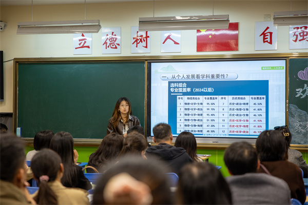 接下来,汪柳主任就新高考方案进行了详细的解读,并就有关于学业水平合格性考试、综合素质评价、学科组合、高考招生流程以及近几年的高考形式与多元升学途径进行了详细的解读,解答家长关于新高考方案的疑惑。同时,汪柳主任还建议家长们破除焦虑,做一个理性的家长,从具体问题着手,才会有所进步。