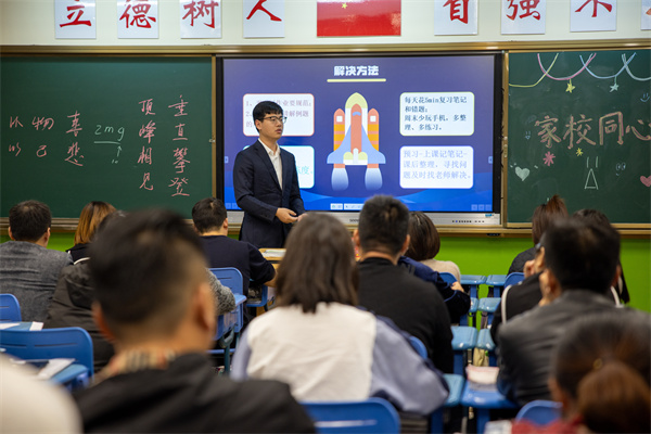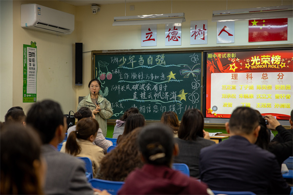 年级家长会结束后,各班又组织了班级家长会。各班主任结合本班实际,就期中情况分析、班级管理、学生在校表现等方面向家长们做了详细的汇报,客观地指出存在的问题,并针对性提出了建设性的意见,与家长交流探讨教育孩子的方法。科任老师也针对本学科的特点与家长分享了教学心得并交流了学习方法。其中语数英物化五科的老师进班进行现场交流,政史地生四科由学科组制作统一视频进行播放。各班还邀请了家长代表和学生代表进行经验分享。最后,老师们与家长还进行了私下交流,现场气氛融洽,热心的话语赢得了家长们的信赖。