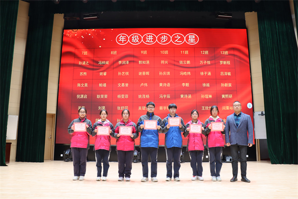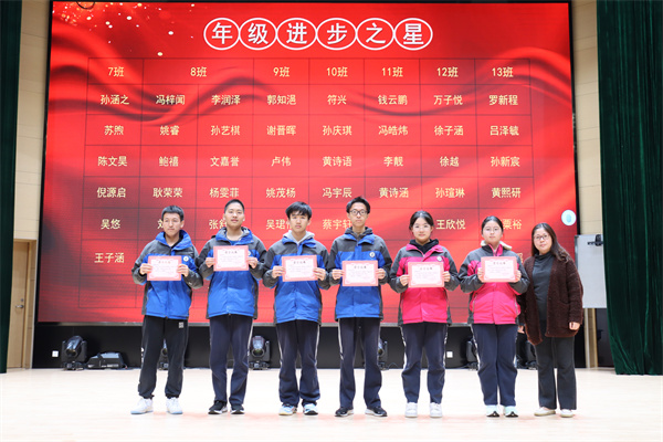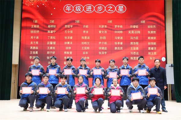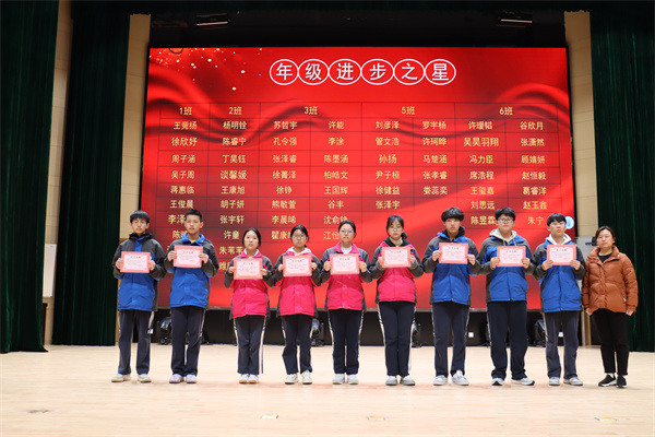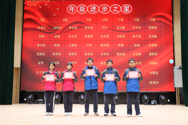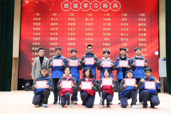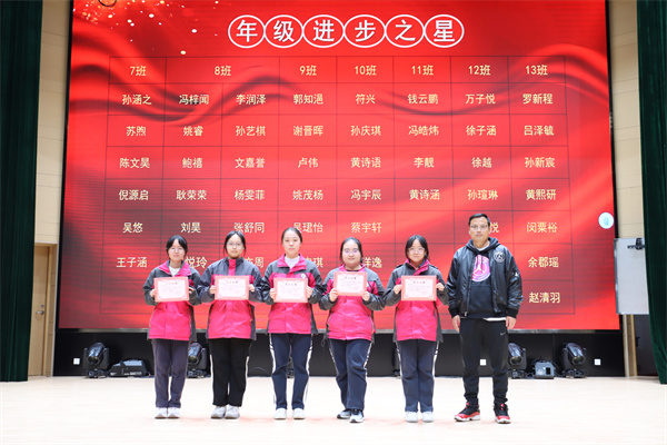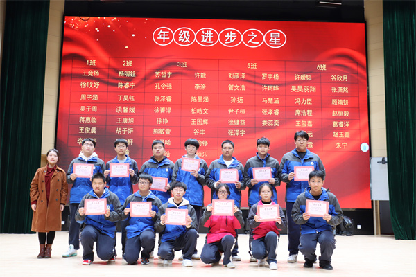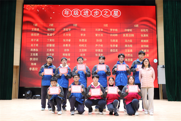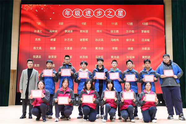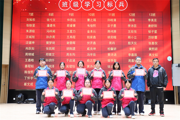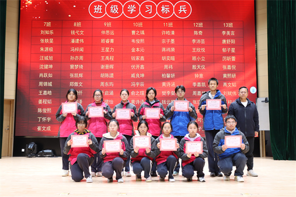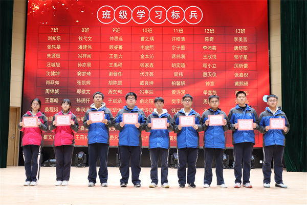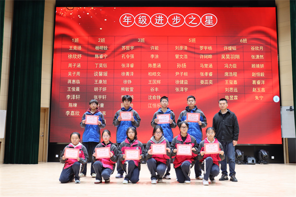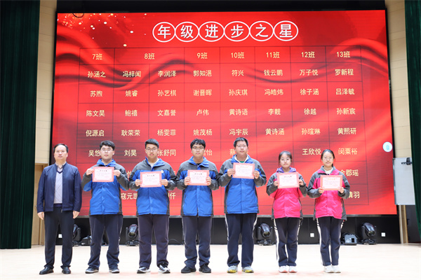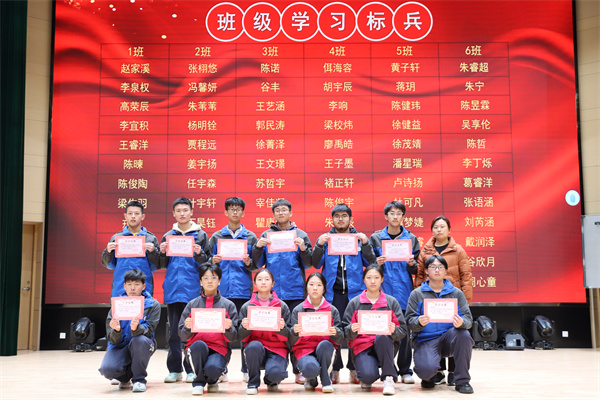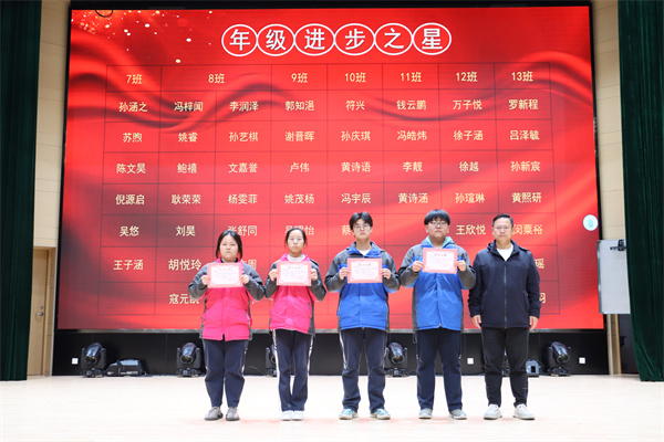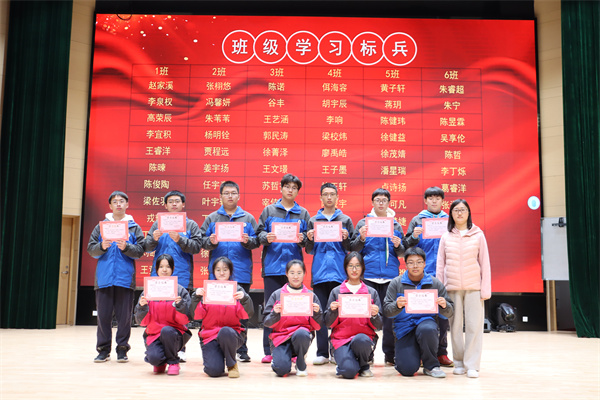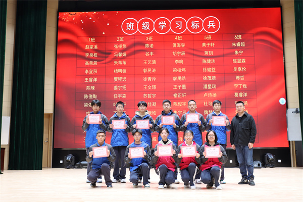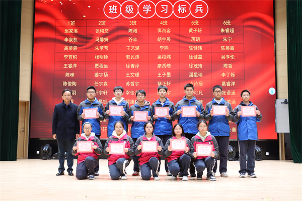 本次大会的第一项议程是对本次考试中涌现出来的优秀同学进行表彰。为鼓励先进,年级特别设立了“年级学习标兵”“单科之星”“班级学习标兵”等多个奖项。每一次考试,都是对知识的检验,都是对能力的考查;每一次表彰,都是对努力的敬重,都是对成长的庆祝。表彰,不仅是对过去成绩的肯定,更是对未来拼搏的激励。相信同学们一定会再接再厉,在下一次考试中,超越自我,勇攀高峰!