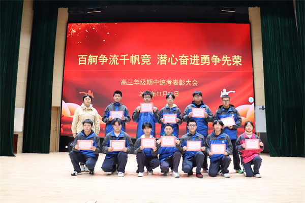 辛勤汗水,换来丰硕成果。为表彰先进,树立模范,激励同学们努力拼搏。11月21日,我校高三全体师生在凤栖湖校区报告厅隆重举行高三年级第一学期期中统考表彰大会。本次活动由高三年级副主任王明星主持。凤栖湖校区校长朱云峰,高三年级主任陈瑞飞出席了本次活动。