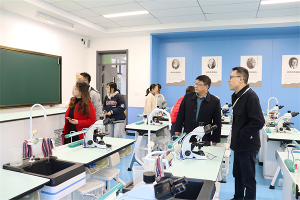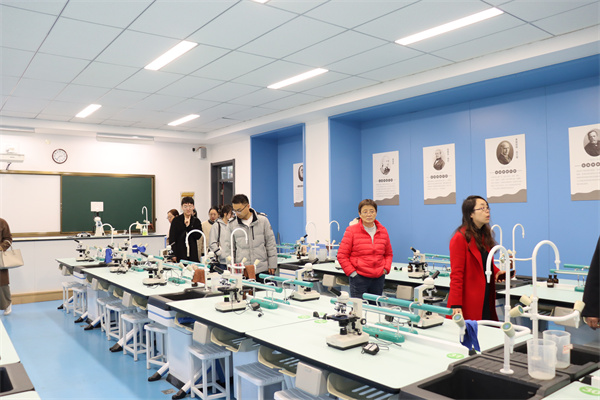 11月24日,盐城市中小学实验学科教师及实验室管理人员专题培训班学员莅临我校凤栖湖校区参观交流,一行120人在盐城市教育局装备中心副主任宋彦京、扬州大学物理学院党委书记王春雨的带领下来到我校。树人学校副校长张鹏热情接待,校办副主任王源等陪同接待。