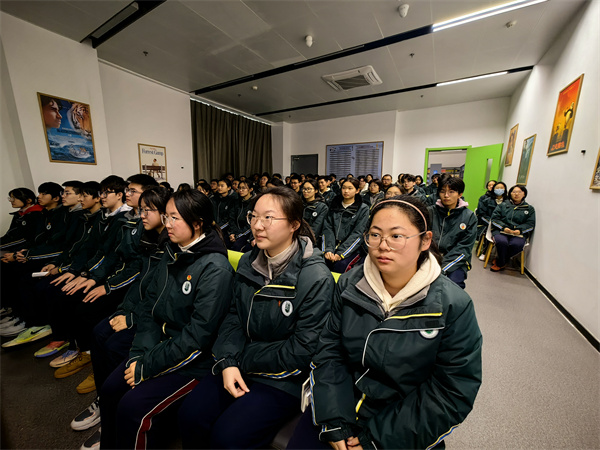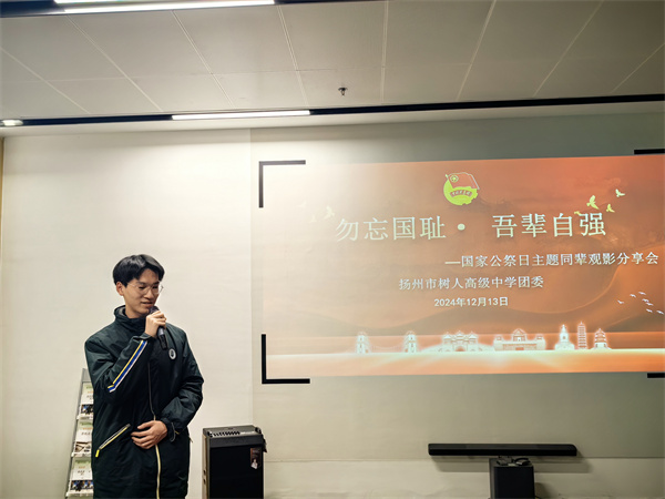 中午12:30,团委书记王菁组织全体高二年级团员参加同辈观影分享会,观看红色电影《南京!南京!》。影片中沉重的画面深深地触动了每一位团员的心灵,大家仿佛目睹了惨绝人寰的南京大屠杀。影片播放完后,大家陷入了深深的思考,久久不能平静。