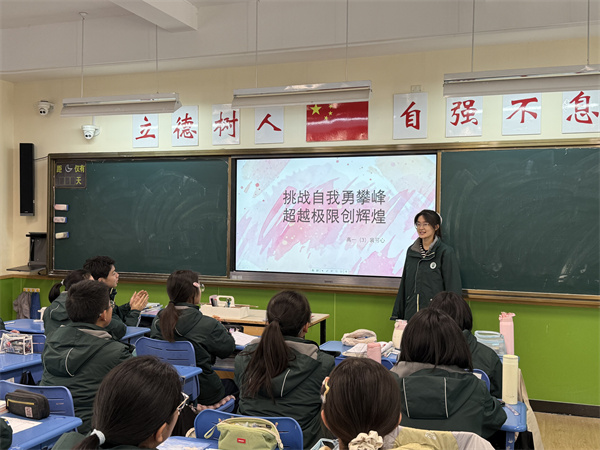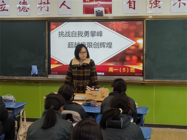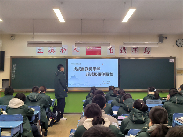 12月16日上午第三节课,扬州市树人高级中学高一年级举行了一场别开生面的班会,主题为“挑战自我勇攀峰,超越极限创辉煌”。此次班会旨在激励同学们在学习上不断挑战自我,超越自我,勇攀知识的高峰,创造属于自己的辉煌。