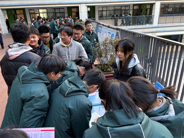 除了进班宣讲,咨询台处也气氛热烈。来自不同专业的学长学姐们耐心解答着同学们的问题,无论是关于专业学习的困惑,还是未来职业发展的迷茫,他们都凭借着自己的专业知识和亲身经历给予了细致的回应。咨询台前人来人往,火爆的场面反映出学弟学妹们对扬州大学的浓厚兴趣和高度关注。
