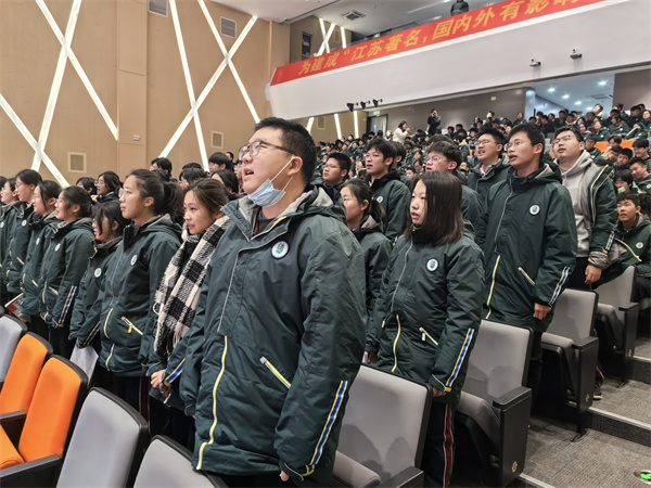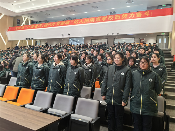 会议的尾声,高二全体同学斗志昂扬,以坚定响亮的口号为新学期加油鼓劲。